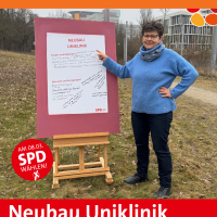 Der Freistaat Bayern, als Eigentümer des Universitätsklinikums Augsburg plant einen Ersatzneubau der Klinik und hat sich dafür auf das Baufeld West, dort wo sich u.a. der Klinikpark befindet, festgelegt. Das alternative Baufeld Ost an der Neusässer Straße wurde abgelehnt. Die SPD Neusäß steht zum Neubau der Uniklinik und der damit verbundenen modernen Gesundheitsversorgung für die Region. Susanne Höhnle, 3. Bürgermeisterin von Neusäß, weist auf die Folgen der Entscheidung für das Baufeld West für die Stadt Neusäß hin: die Bebauung des Klinikparkgeländes bedeutet den Verlust eines wichtigen Naherholungsraums, die großflächige Versiegelung verhindert die nächtliche Abkühlung in der heißen Jahreszeit und bedeutet eine erhöhte Überflutungsgefahr bei Starkregen für Alt-Neusäß. Die Gebiete rund um das Baufeld sind jahrelangem Baulärm ausgesetzt. Die SPD Neusäß fordert im Rahmen der anstehenden Bauleitplanung durch die Stadt Augsburg eine ergebnisoffene und intensive Alternativprüfung beider Baufelder und die aktive Beteiligung der angrenzenden Kommunen. Die Zukunftsfragen Verkehrsbelastung und Naturschutz müssen stärker berücksichtigt werden. Die Stadt Neusäß ist nicht direkt an dem Planungsprozess beteiligt. Aber das Bundes-Baugesetz (BauGB) fordert ein „interkommunales Abstimmungsgebot“ für derartige Vorhaben. Dritte Bürgermeisterin Höhnle fordert, dass die Stadt Neusäß diese Rechtsposition aktiv und selbstbewusst wahrnehmen muss.